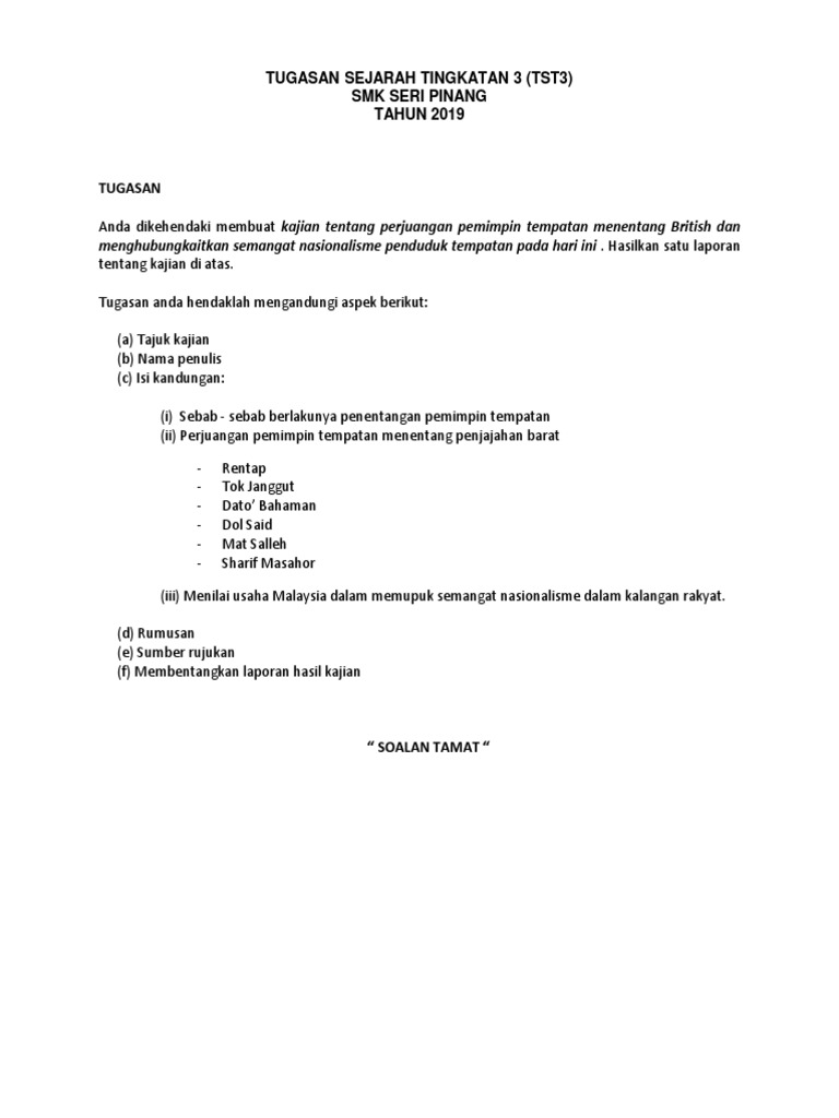 Kerja Kursus Sejarah Tingkatan 3 2021 Contoh Terbaik Pt3 from mypt3.com Ayahnya, panglima munas berkhidmat sebagai panglima istana tengku seri maharaja jeram. Tok janggut dilahirkan pada tahun 1853 di kampung saring daerah jeram, pasir puteh, kelantan. Latar belakang naskhah dan tok janggut naskhah asal 'sejarah peperangan tok janggut' ini tersimpan di pusat manuskrip melayu, perpustakaan negara, kuala lumpur, dengan nombor rujukannya ms 1651. Perang ini tercetus pada 29 mei 1915 apabila berlaku perbalahan di antara tok janggut dengan sarjan che wan sulaiman seorang anggota polis british yang membawa kepada kematian sarjan che wan sulaiman. Pada 29 april 1915, pentadbiran jeram, pasir puteh, kelantan telah diambil alih oleh encik latiff, menggantikan engku besar. Cukai kepala sebanyak rm1.00 seorang setahun 3. Nama sebenar beliau ialah haji mat hassan bin munas, namun beliau lebih dikenali sebagai tok janggut kerana memelihara janggut hingga ke paras dada. Oct 07, 2013 · tok janggut.